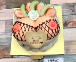 5号アミアミブラジャーケーキ こちらは土台をチョコクリームにしたおっぱいケーキに、網ブラ、バラ、キウイをオプションされたデザイン♪   5号おっぱいケーキ 数字、キスマークオプション こちらのデザインは オンラ […]