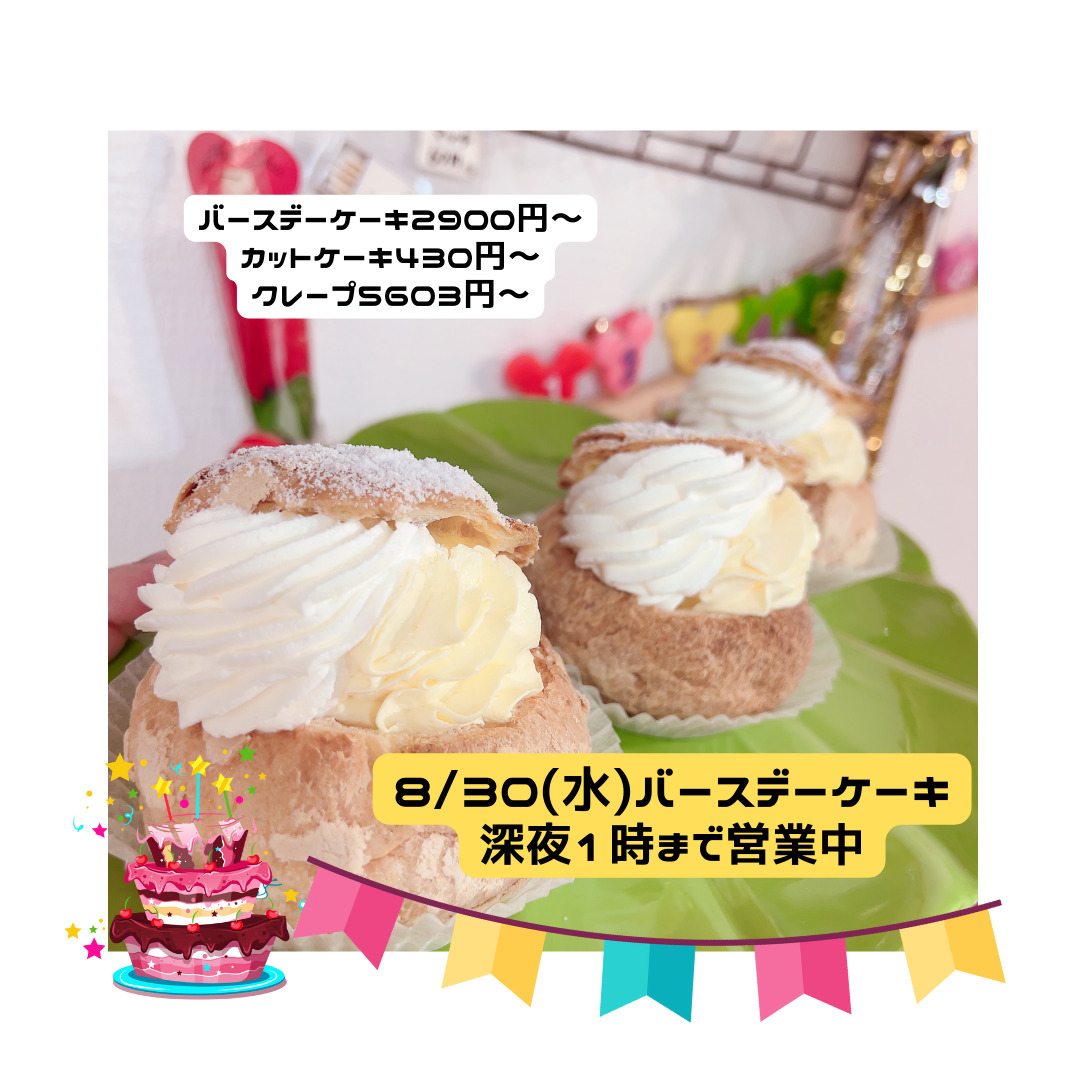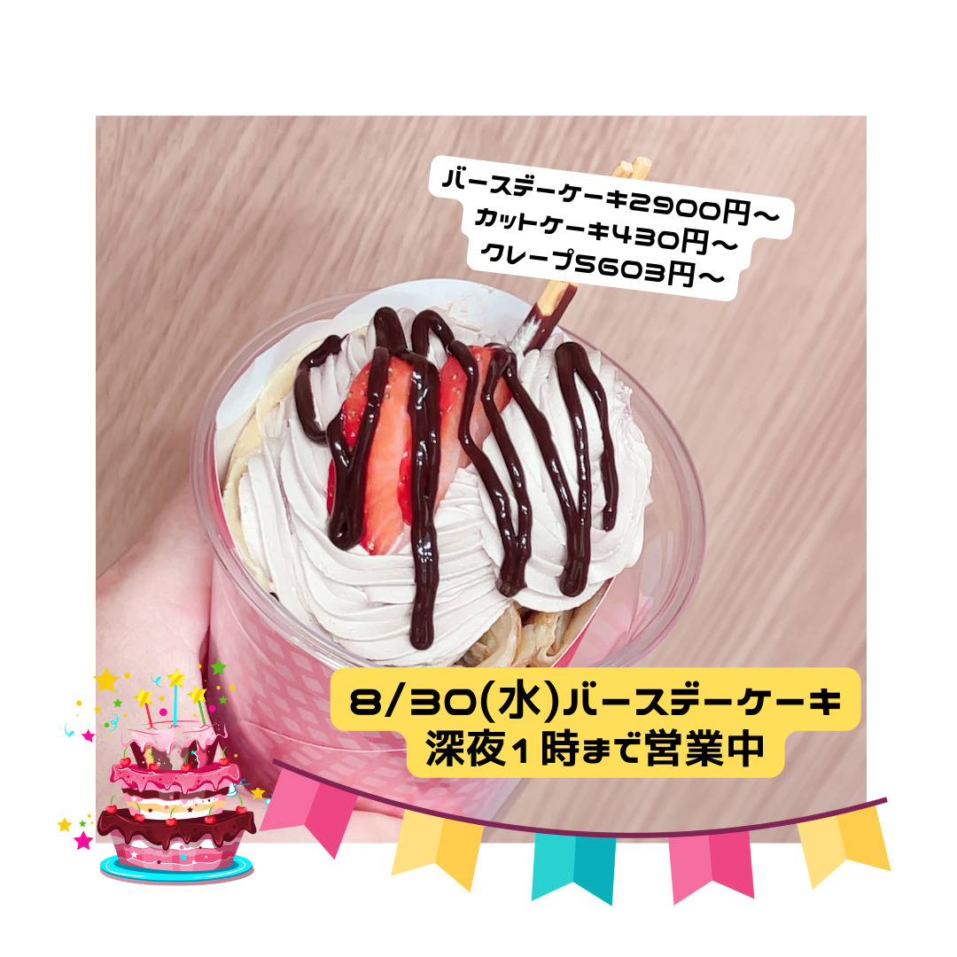 8/30(水)お急ぎOK誕生日ケーキ(当日デザインのみ)本日も深夜1時まで営業しております。