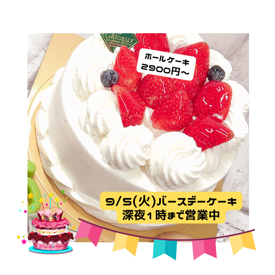 9/5(火)お急ぎOK誕生日ケーキ(当日デザインのみ)本日も深夜1時まで営業しております。