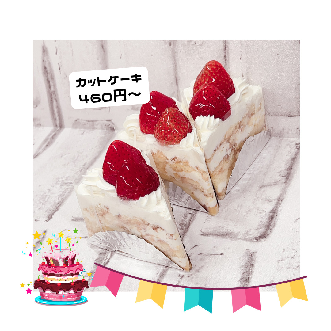 カットケーキ430円~、ホールケーキ2000円~当日ご購入できます。