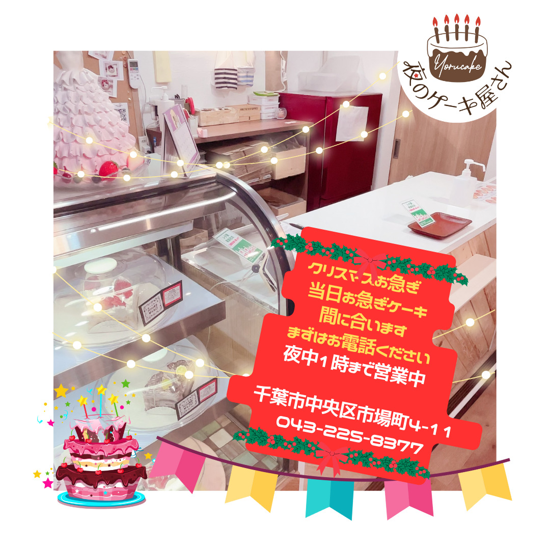 12/23(土)クリスマスケーキ間に合います・お誕生日ケーキ(当日デザインのみ)本日も深夜1時まで営業しております。