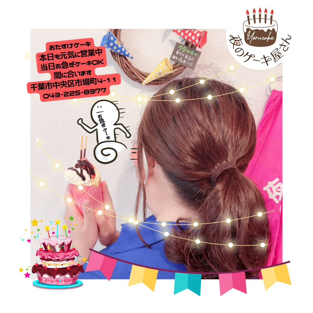 「夜のケーキ屋さん 千葉」で検索し🔎、当店のホームページからケーキの参考画像たくさん掲載しておりますので、スクショを撮ってご相談いただけると適切なアドバイス、ご提案が出来ます。