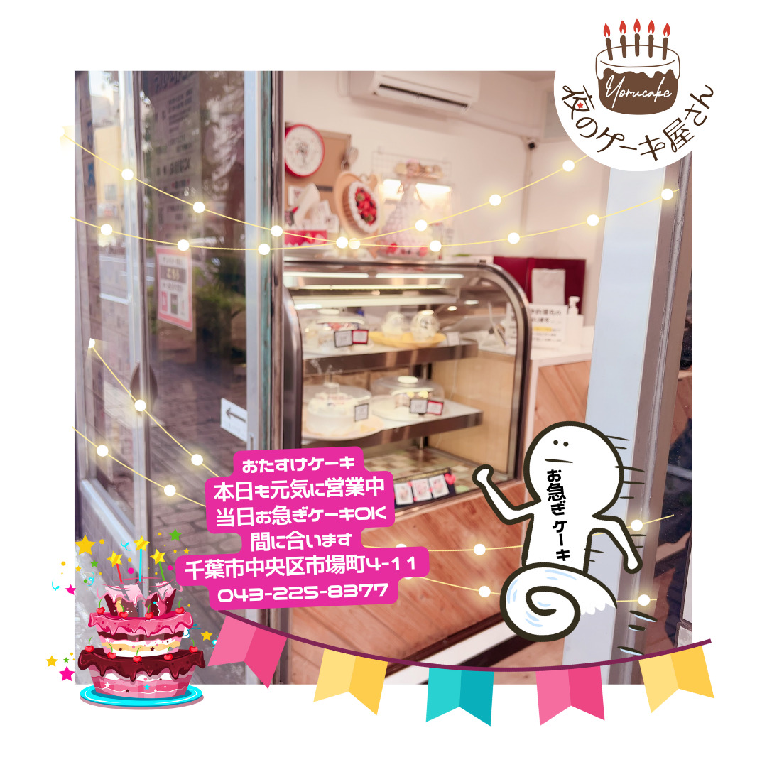 お急ぎ誕生日ケーキ(当日デザインのみ)本日も夜中1時まで営業しております。