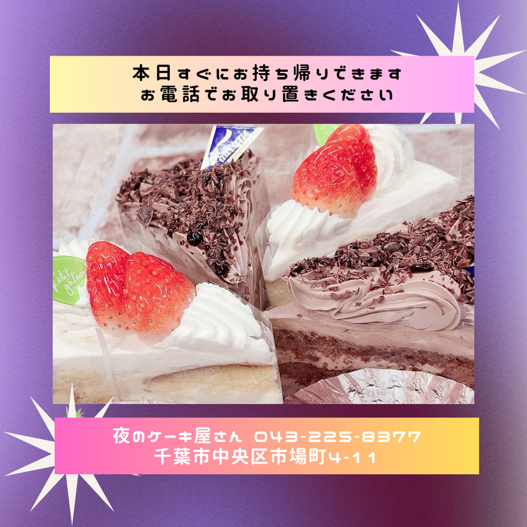「夜のケーキ屋さん 千葉」で検索し🔎、当店のホームページからケーキの参考画像たくさん掲載しておりますので、ケーキのスクショを撮ってご相談いただけると適切なアドバイス、ご提案が出来ます。