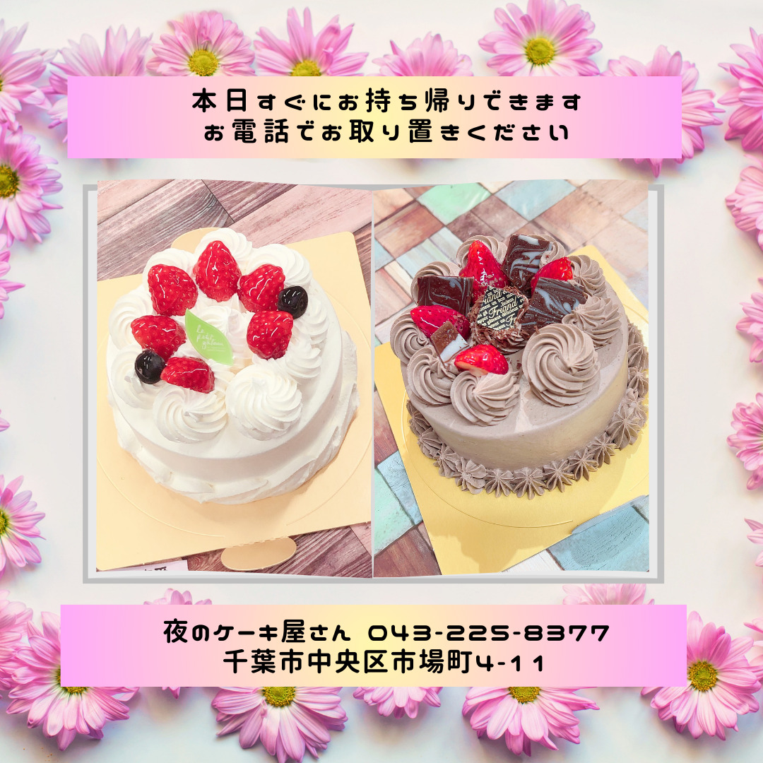 「夜のケーキ屋さん 千葉」で検索し🔎、当店のホームページからケーキの参考画像たくさん掲載しておりますので、✅ケーキのスクショを撮ってご相談いただけると適切なアドバイス、ご提案が出来ます。