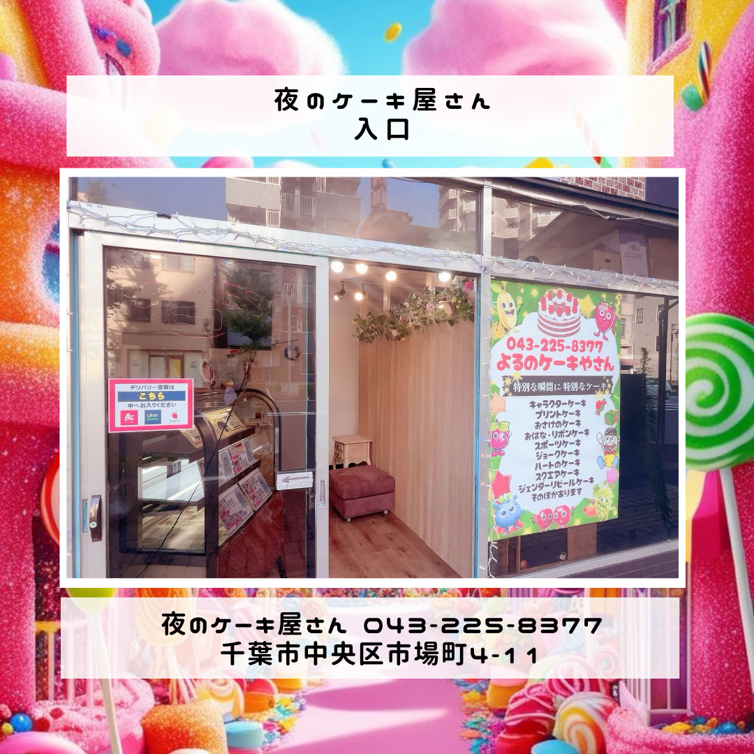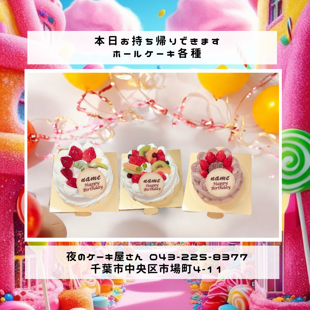 「夜のケーキ屋さん 千葉」で検索し🔎、当店のホームページからケーキの参考画像たくさん掲載しておりますので、✅ケーキのスクショを撮ってご相談いただけると適切なアドバイス、ご提案が出来ます。