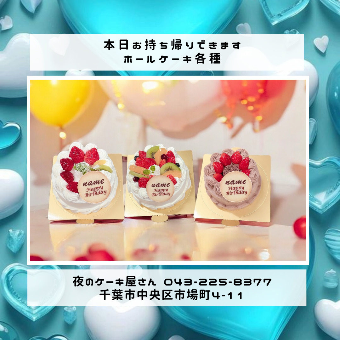 「夜のケーキ屋さん 千葉」で検索し🔎、当店のホームページからケーキの参考画像たくさん掲載しておりますので、✅ケーキのスクショを撮ってご相談いただけると適切なアドバイス、ご提案が出来ます。