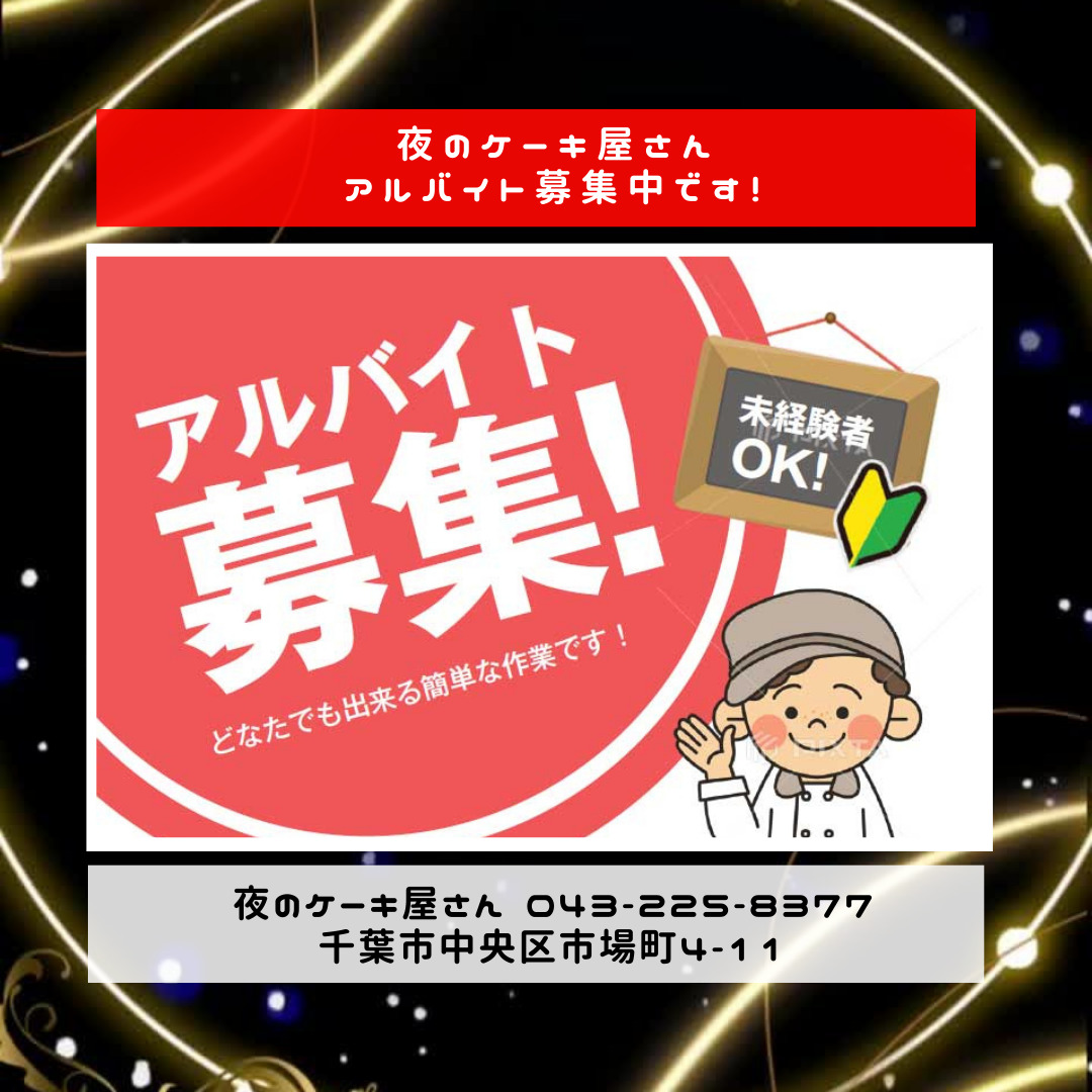 夜のケーキ屋さんでは、週末メインで入れるアルバイトさんを募集してます。