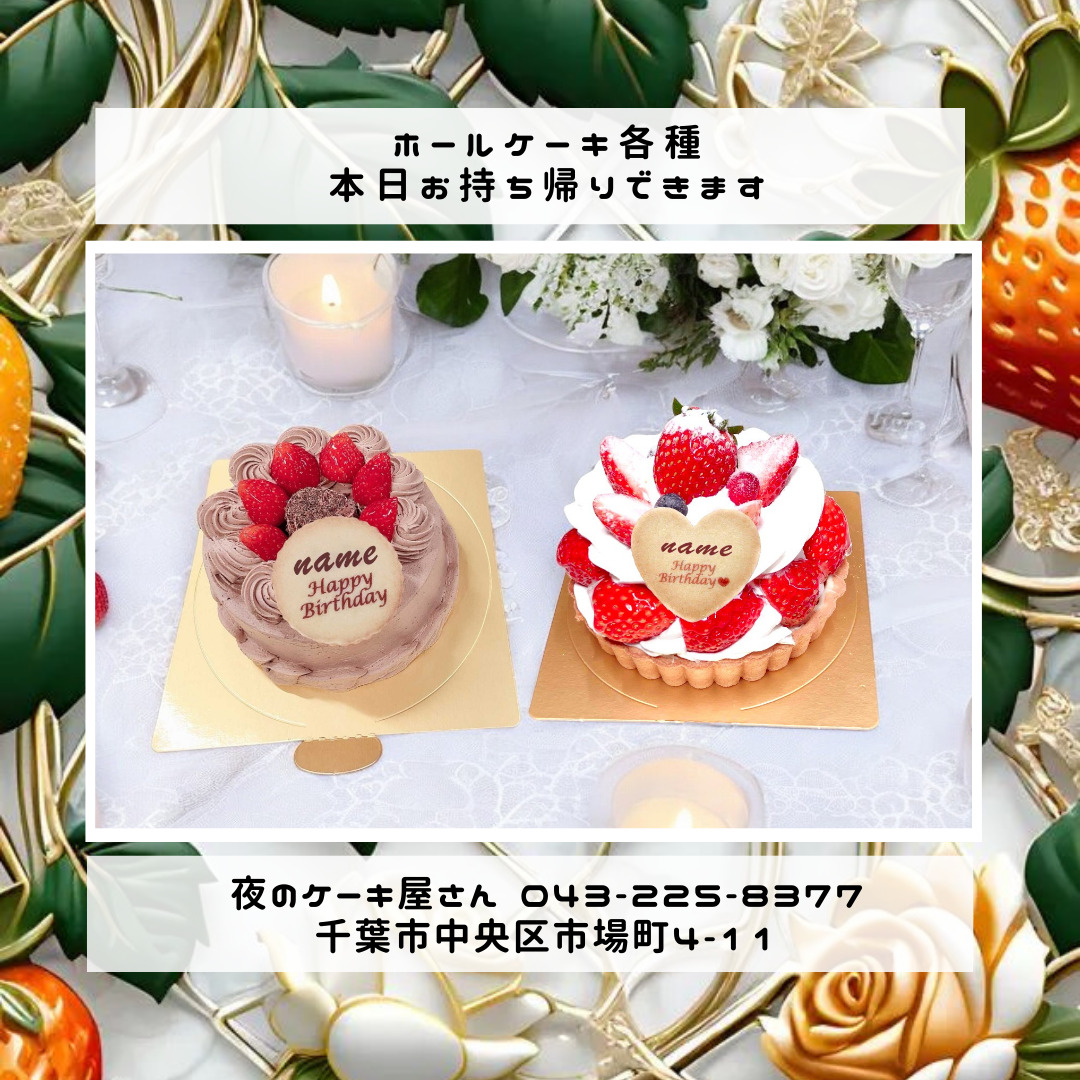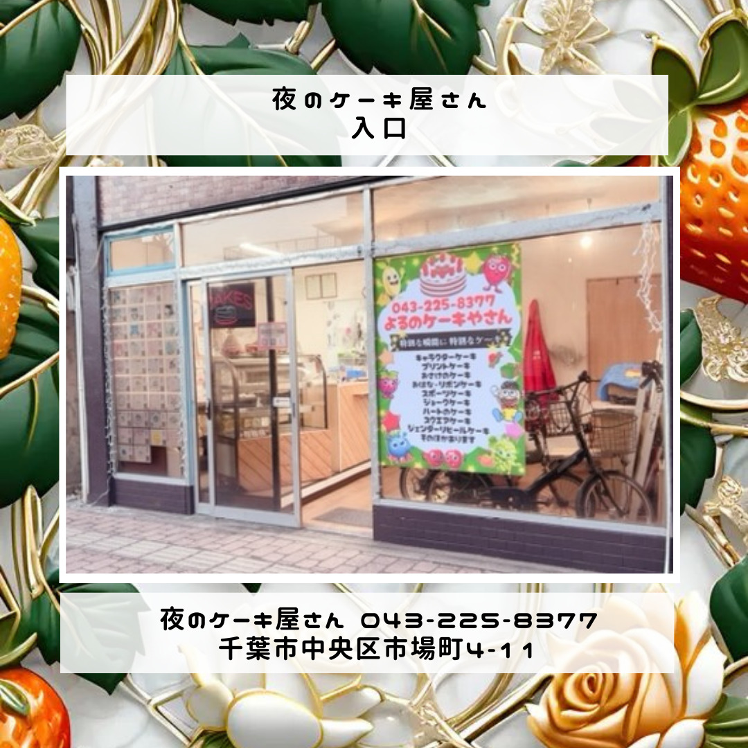 「夜のケーキ屋さん 千葉」で検索し🔎、当店のホームページからケーキの参考画像たくさん掲載しておりますので、✅ケーキのスクショを撮ってご相談いただけると適切なアドバイス、ご提案が出来ます。