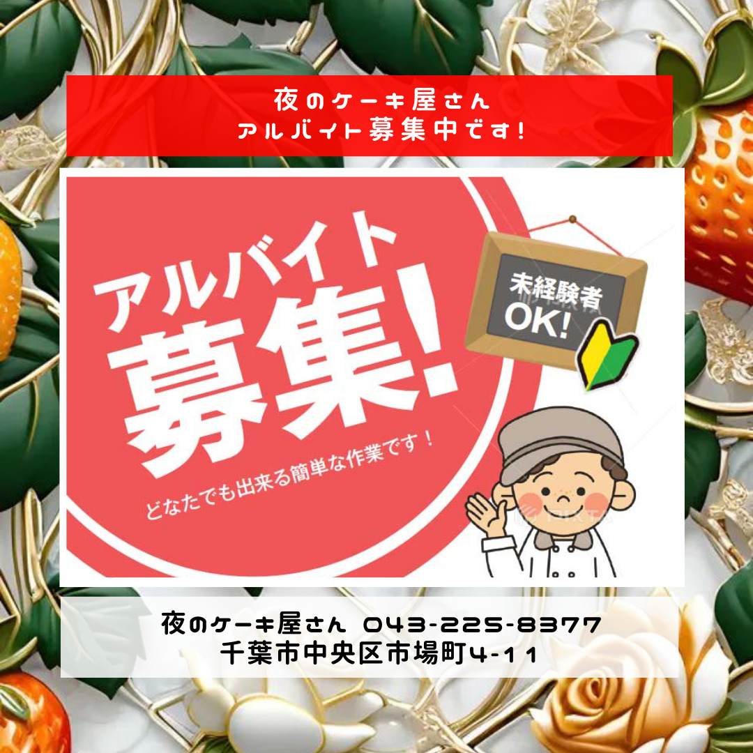 夜のケーキ屋さんでは、週末メインで入れるアルバイトさんを募集してます。