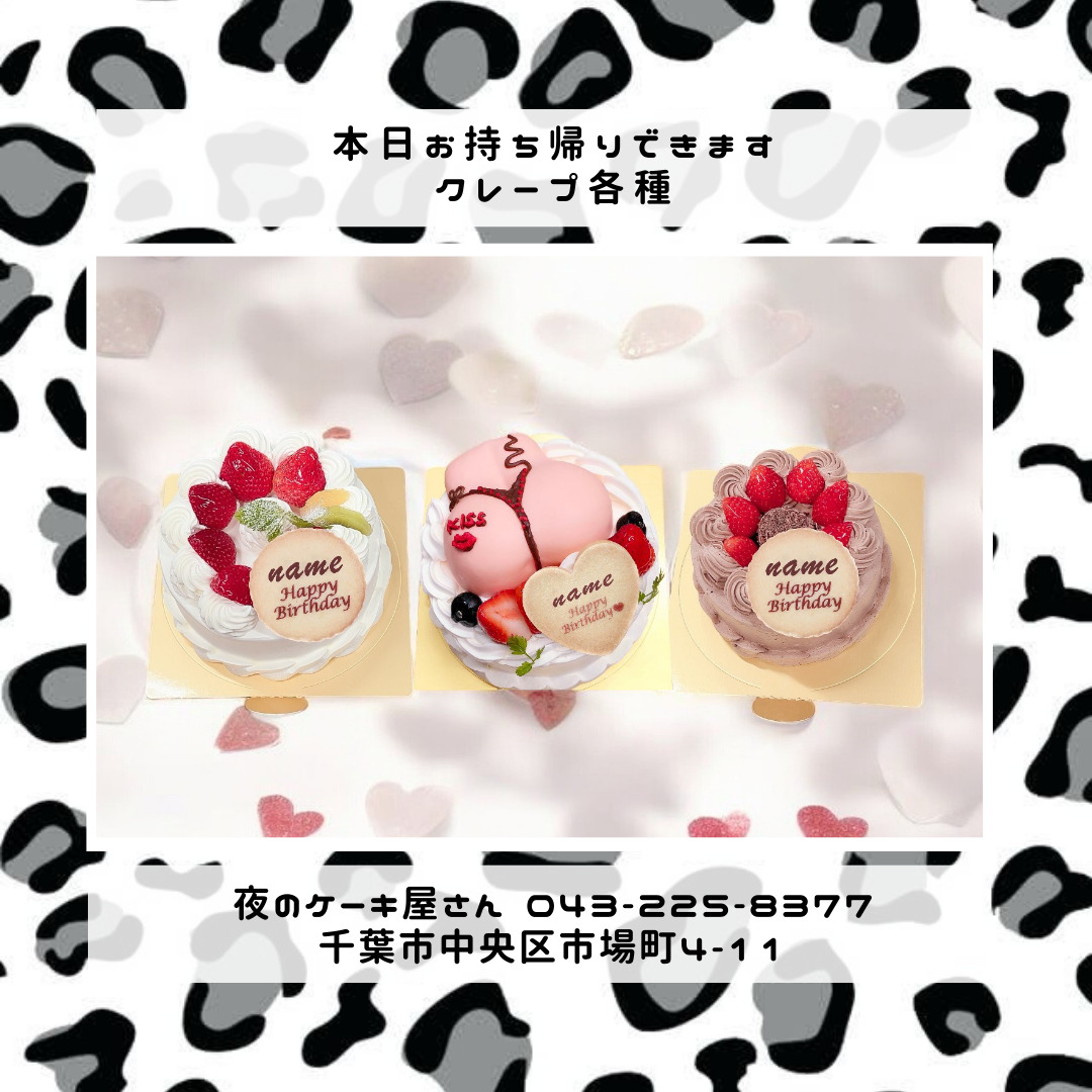 「夜のケーキ屋さん 千葉」で検索し🔎、当店のホームページからケーキの参考画像たくさん掲載しておりますので、✅ケーキのスクショを撮ってご相談いただけると適切なアドバイス、ご提案が出来ます。