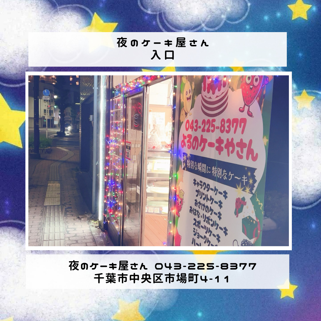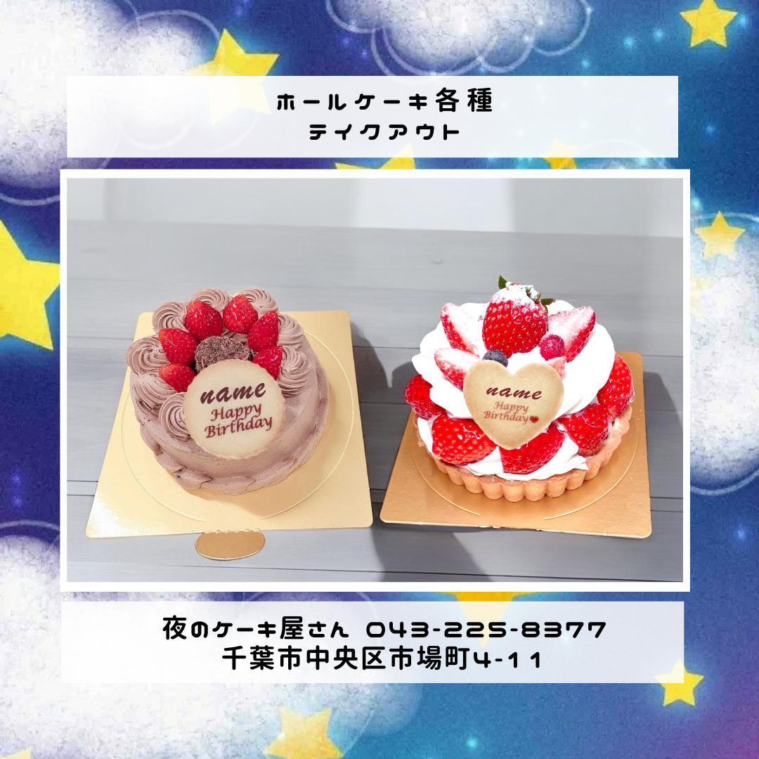 「夜のケーキ屋さん 千葉」で検索し🔎、当店のホームページからケーキの参考画像たくさん掲載しておりますので、✅ケーキのスクショを撮ってご相談いただけると適切なアドバイス、ご提案が出来ます。