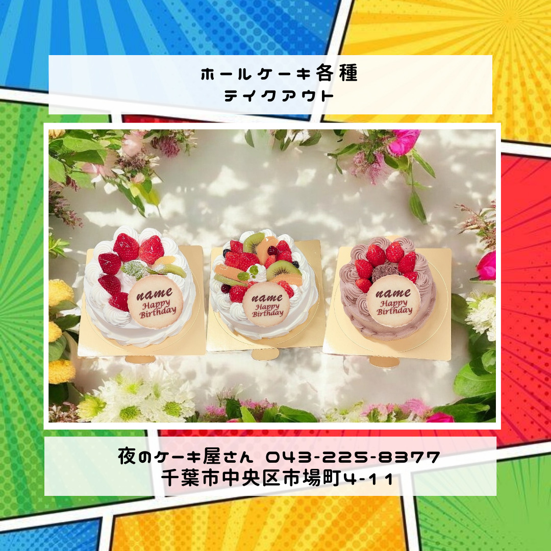 「夜のケーキ屋さん 千葉」で検索し🔎、当店のホームページからケーキの参考画像たくさん掲載しておりますので、✅ケーキのスクショを撮ってご相談いただけると適切なアドバイス、ご提案が出来ます。