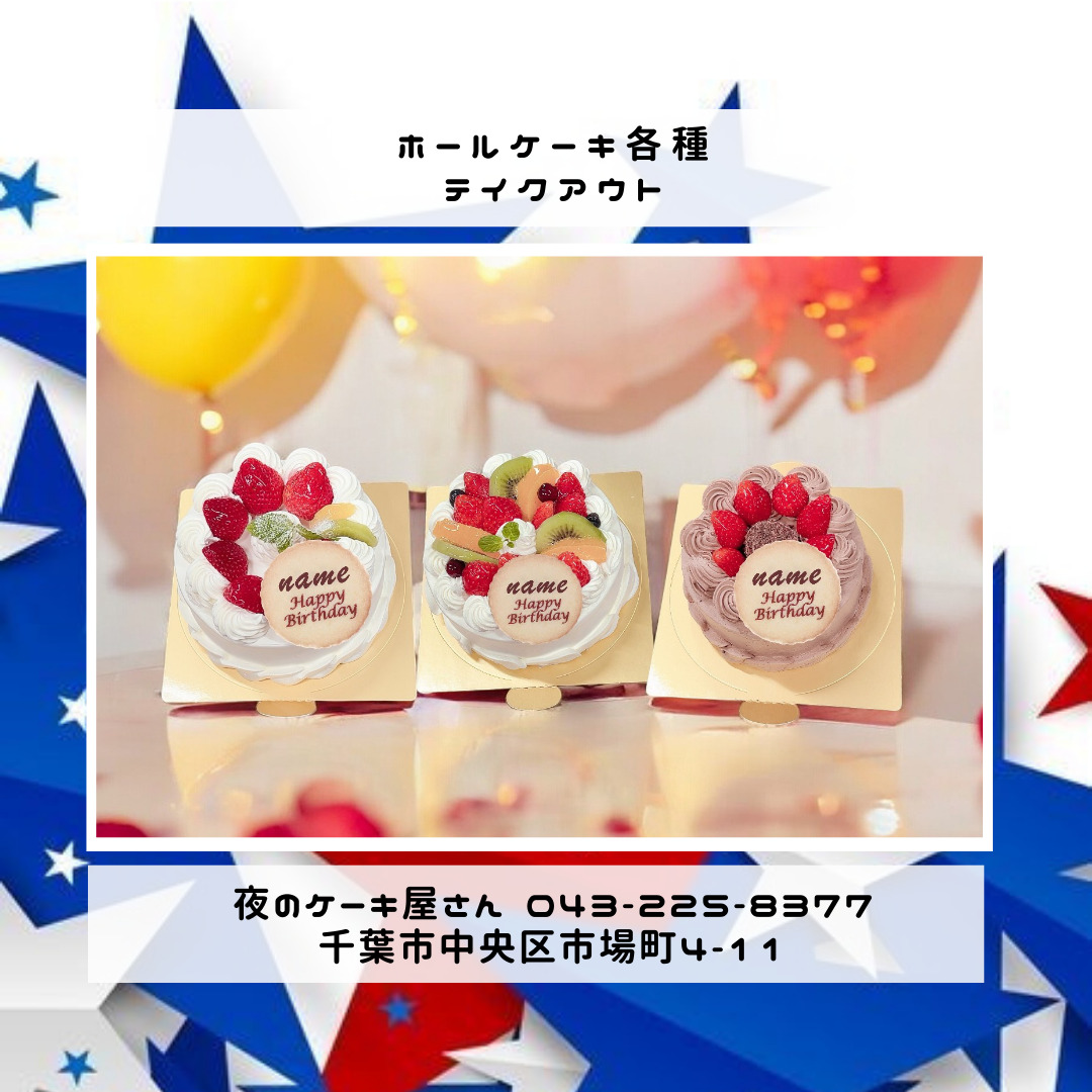 「夜のケーキ屋さん 千葉」で検索し🔎、当店のホームページからケーキの参考画像たくさん掲載しておりますので、✅ケーキのスクショを撮ってご相談いただけると適切なアドバイス、ご提案が出来ます。
