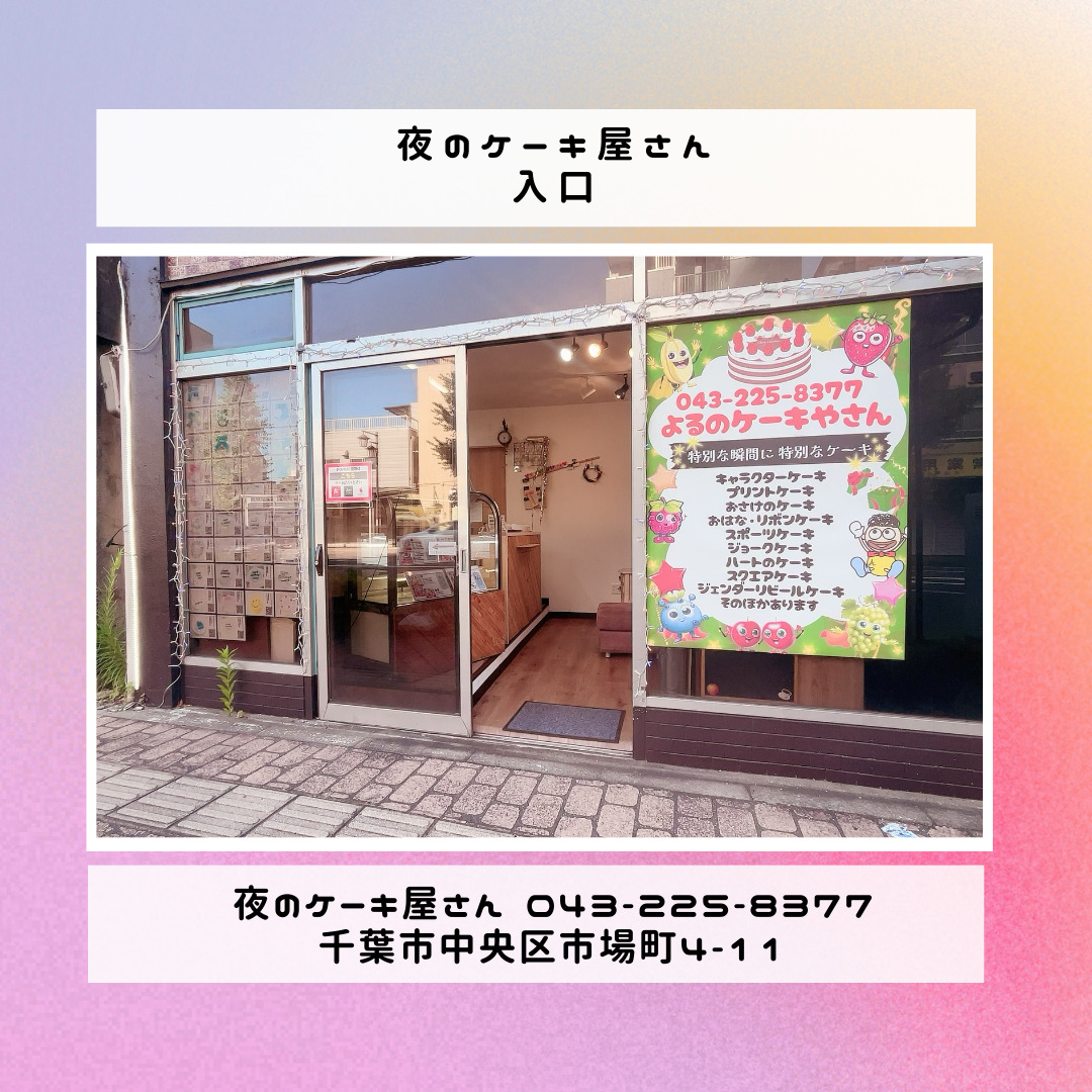 「夜のケーキ屋さん 千葉」で検索し🔎、当店のホームページからケーキの参考画像たくさん掲載しておりますので、✅ケーキのスクショを撮ってご相談いただけると適切なアドバイス、ご提案が出来ます。