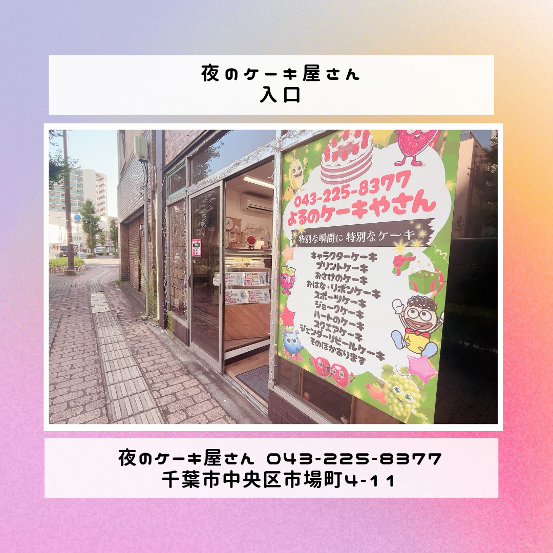 「夜のケーキ屋さん 千葉」で検索し🔎、当店のホームページからケーキの参考画像たくさん掲載しておりますので、✅ケーキのスクショを撮ってご相談いただけると適切なアドバイス、ご提案が出来ます。