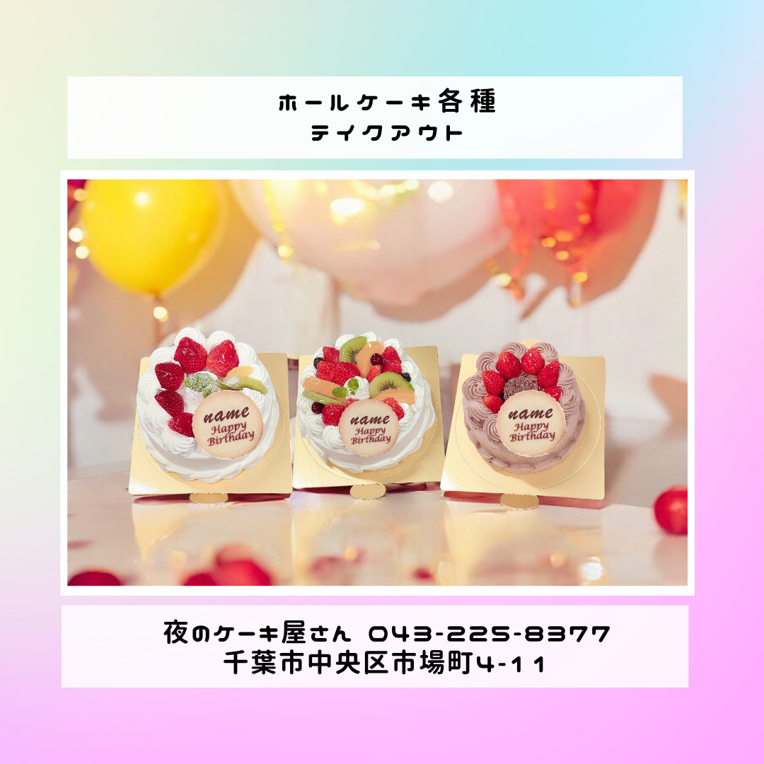 「夜のケーキ屋さん 千葉」で検索し🔎、当店のホームページからケーキの参考画像たくさん掲載しておりますので、✅ケーキのスクショを撮ってご相談いただけると適切なアドバイス、ご提案が出来ます。