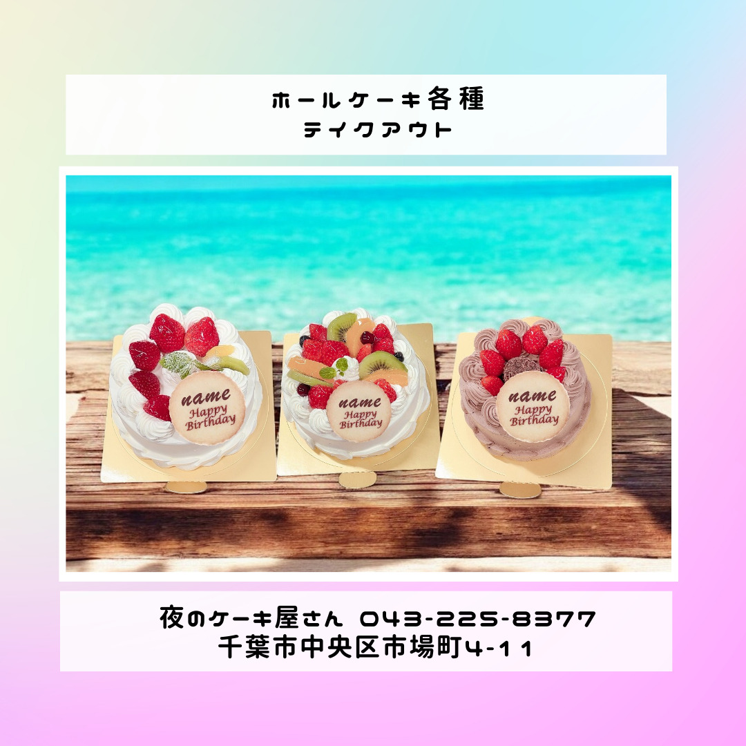 「夜のケーキ屋さん 千葉」で検索し🔎、当店のホームページからケーキの参考画像たくさん掲載しておりますので、✅ケーキのスクショを撮ってご相談いただけると適切なアドバイス、ご提案が出来ます。
