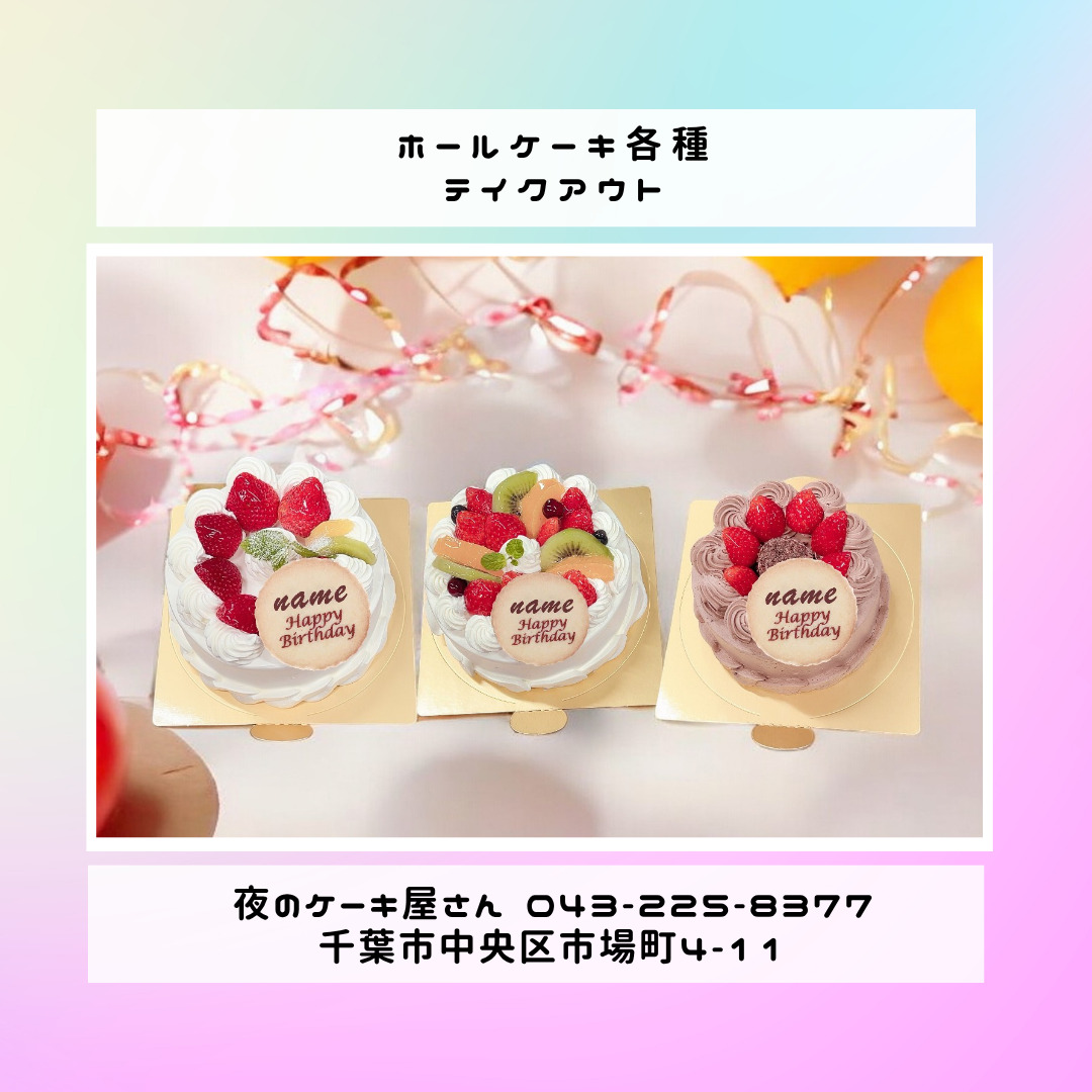 「夜のケーキ屋さん 千葉」で検索し🔎、当店のホームページからケーキの参考画像たくさん掲載しておりますので、✅ケーキのスクショを撮ってご相談いただけると適切なアドバイス、ご提案が出来ます。