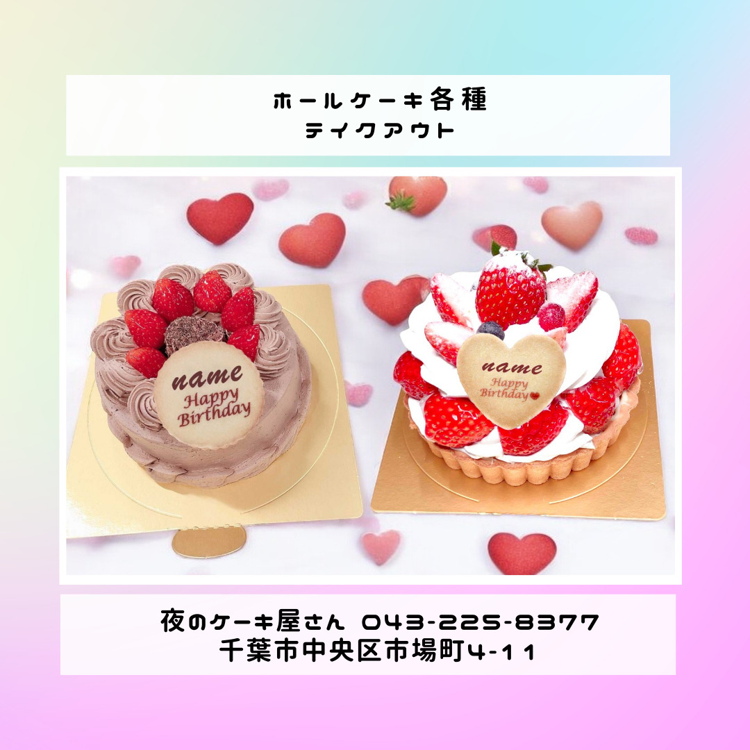 「夜のケーキ屋さん 千葉」で検索し🔎、当店のホームページからケーキの参考画像たくさん掲載しておりますので、✅ケーキのスクショを撮ってご相談いただけると適切なアドバイス、ご提案が出来ます。