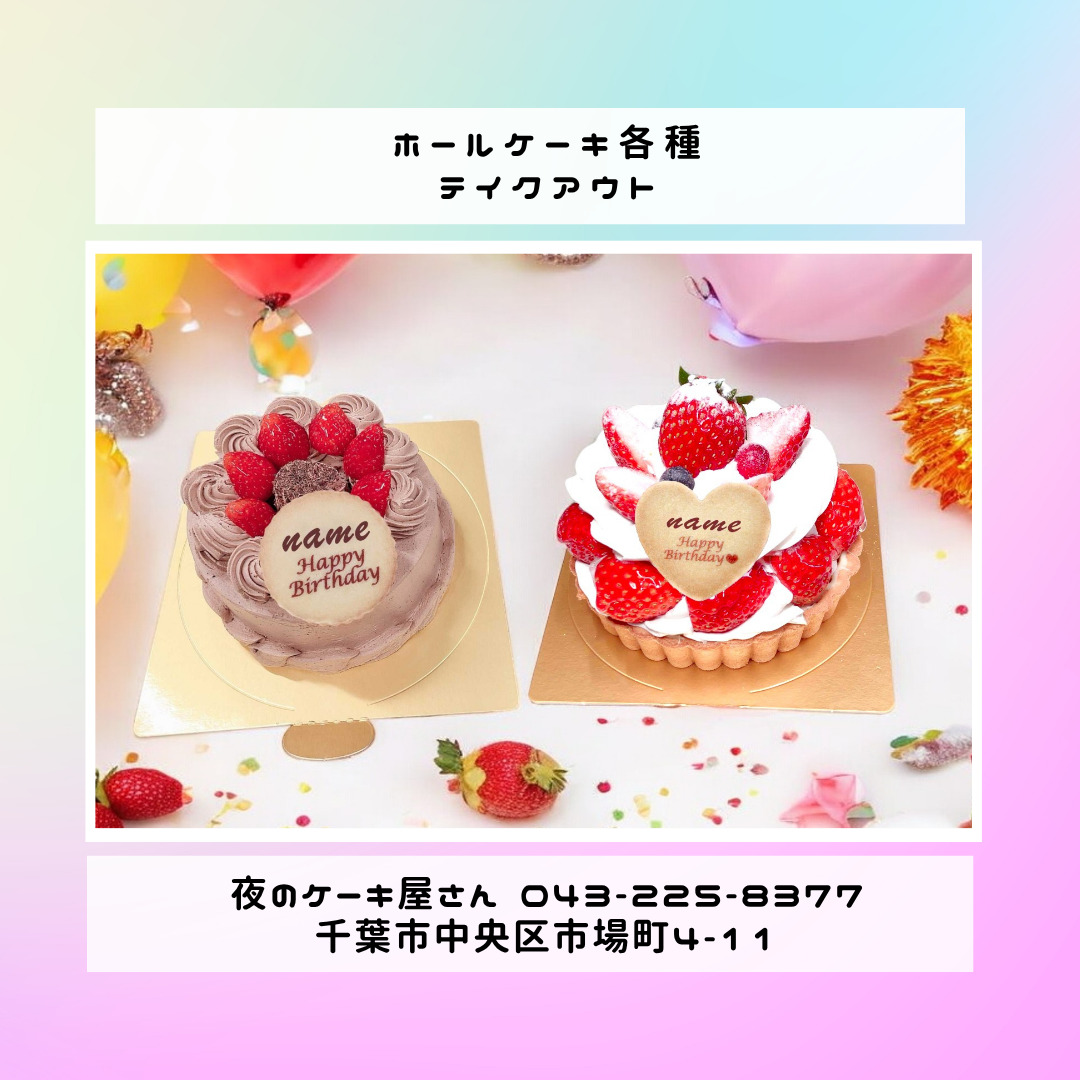「夜のケーキ屋さん 千葉」で検索し🔎、当店のホームページからケーキの参考画像たくさん掲載しておりますので、✅ケーキのスクショを撮ってご相談いただけると適切なアドバイス、ご提案が出来ます。