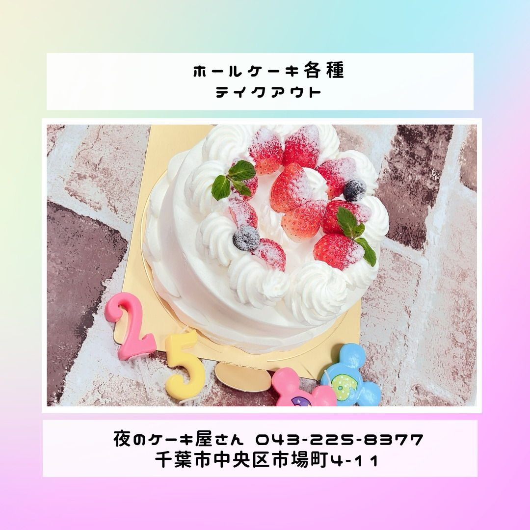 「夜のケーキ屋さん 千葉」で検索し🔎、当店のホームページからケーキの参考画像たくさん掲載しておりますので、✅ケーキのスクショを撮ってご相談いただけると適切なアドバイス、ご提案が出来ます。