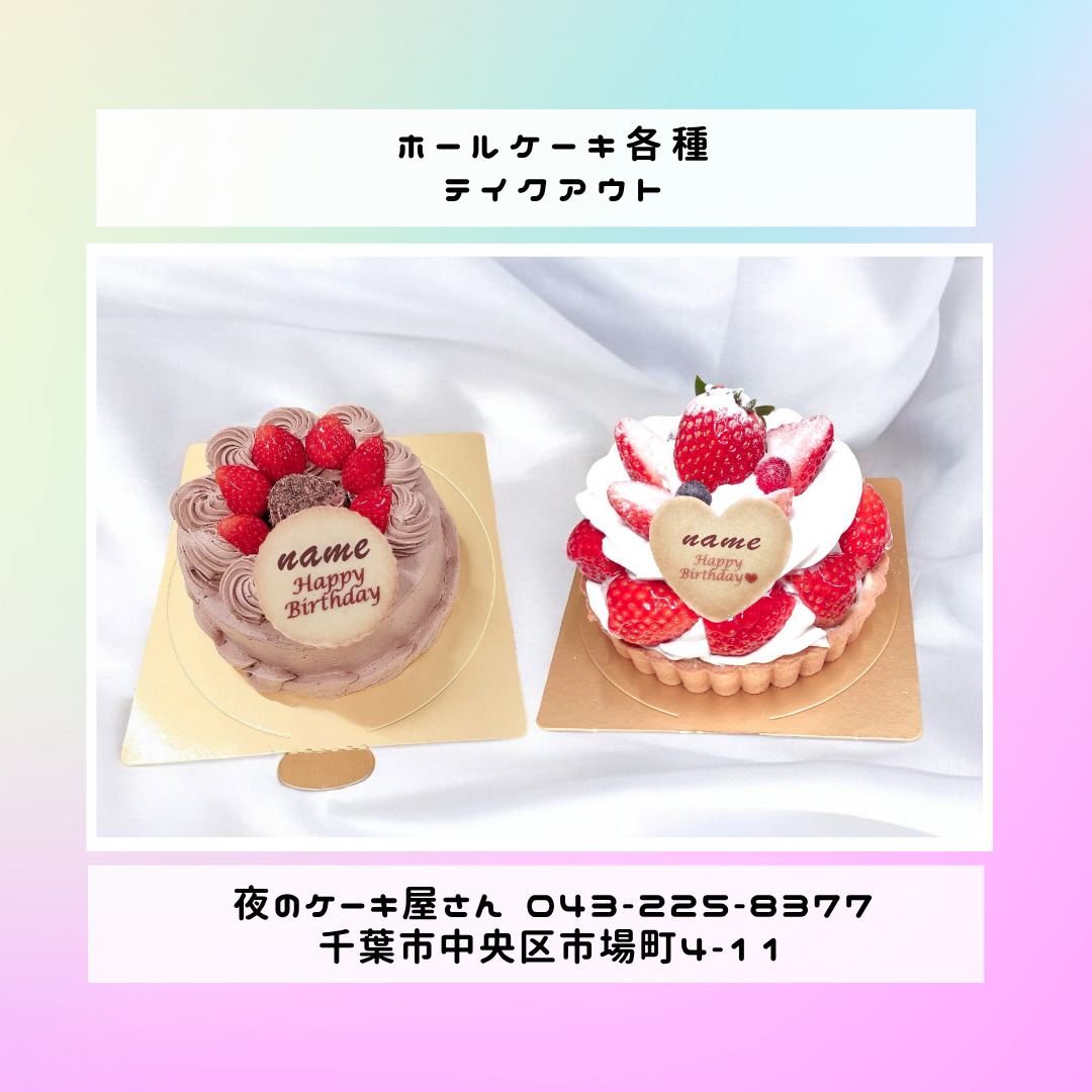 「夜のケーキ屋さん 千葉」で検索し🔎、当店のホームページからケーキの参考画像たくさん掲載しておりますので、✅ケーキのスクショを撮ってご相談いただけると適切なアドバイス、ご提案が出来ます。