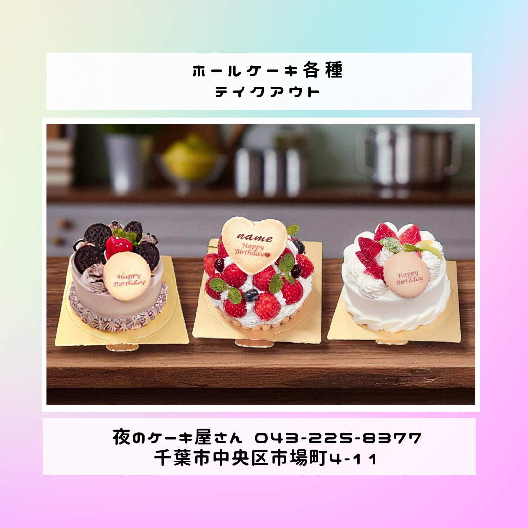 「夜のケーキ屋さん 千葉」で検索し🔎、当店のホームページからケーキの参考画像たくさん掲載しておりますので、✅ケーキのスクショを撮ってご相談いただけると適切なアドバイス、ご提案が出来ます。