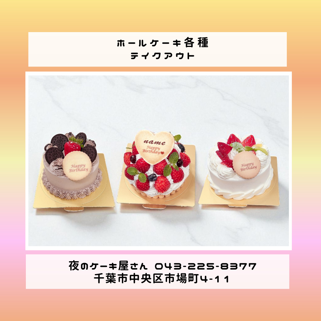「夜のケーキ屋さん 千葉」で検索し🔎、当店のホームページからケーキの参考画像たくさん掲載しておりますので、✅ケーキのスクショを撮ってご相談いただけると適切なアドバイス、ご提案が出来ます。