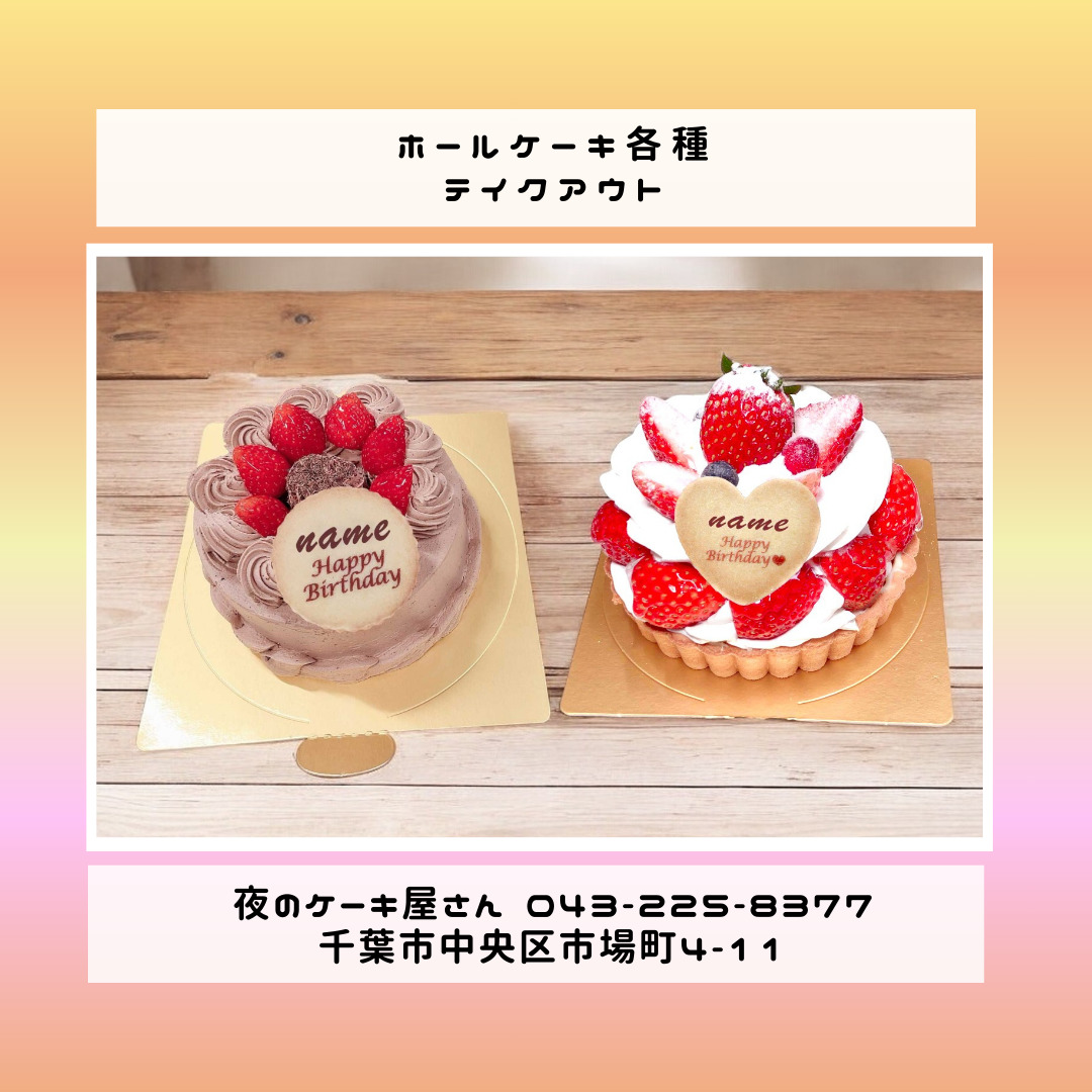 「夜のケーキ屋さん 千葉」で検索し🔎、当店のホームページからケーキの参考画像たくさん掲載しておりますので、✅ケーキのスクショを撮ってご相談いただけると適切なアドバイス、ご提案が出来ます。