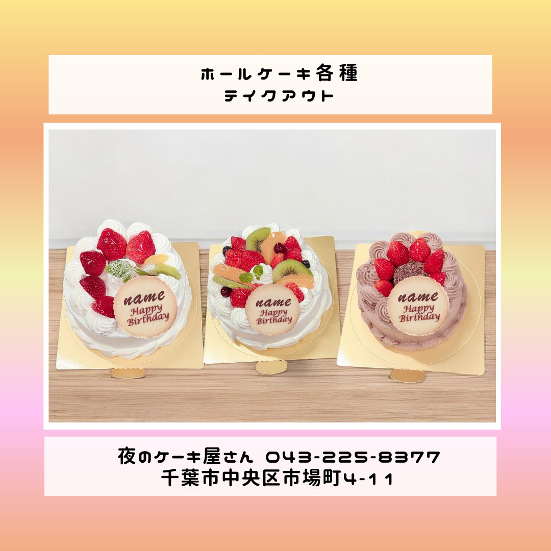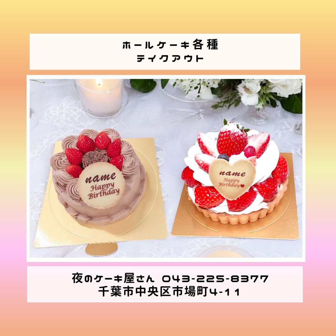 「夜のケーキ屋さん 千葉」で検索し🔎、当店のホームページからケーキの参考画像たくさん掲載しておりますので、✅ケーキのスクショを撮ってご相談いただけると適切なアドバイス、ご提案が出来ます。