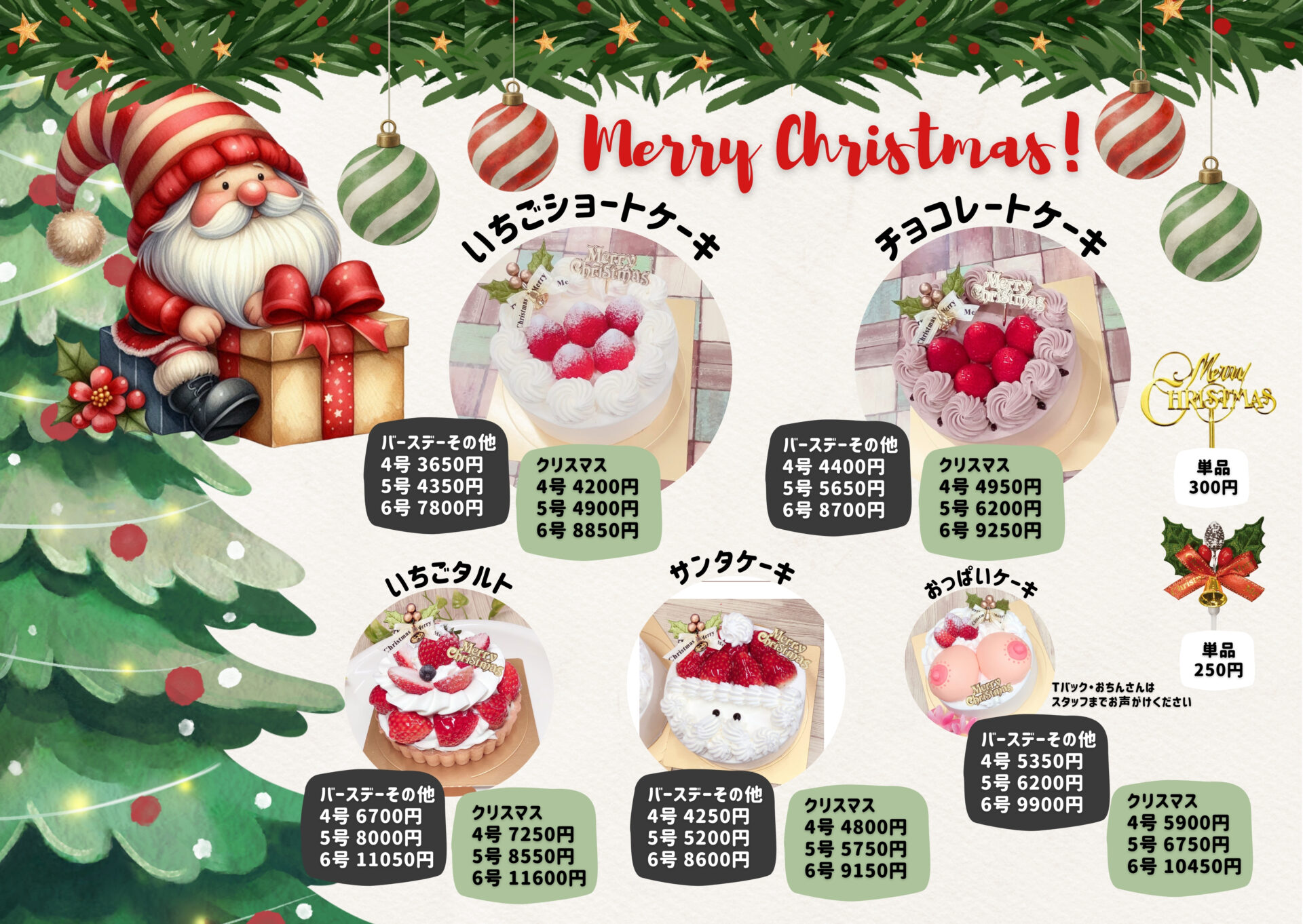 オーダーケーキは当日できません(事前のご予約・お支払いが必要となります)