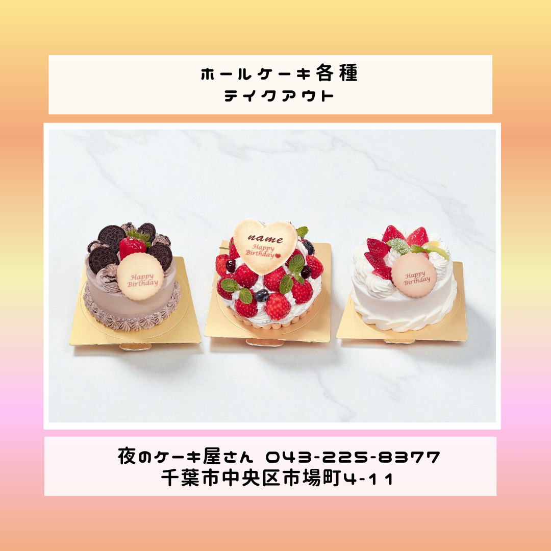 「夜のケーキ屋さん 千葉」で検索し🔎、当店のホームページからケーキの参考画像たくさん掲載しておりますので、✅ケーキのスクショを撮ってご相談いただけると適切なアドバイス、ご提案が出来ます。