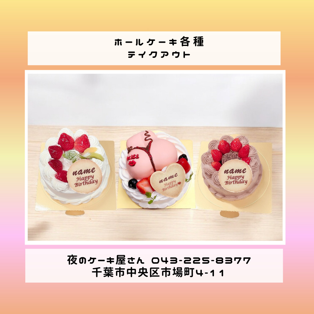 「夜のケーキ屋さん 千葉」で検索し🔎、当店のホームページからケーキの参考画像たくさん掲載しておりますので、✅ケーキのスクショを撮ってご相談いただけると適切なアドバイス、ご提案が出来ます。