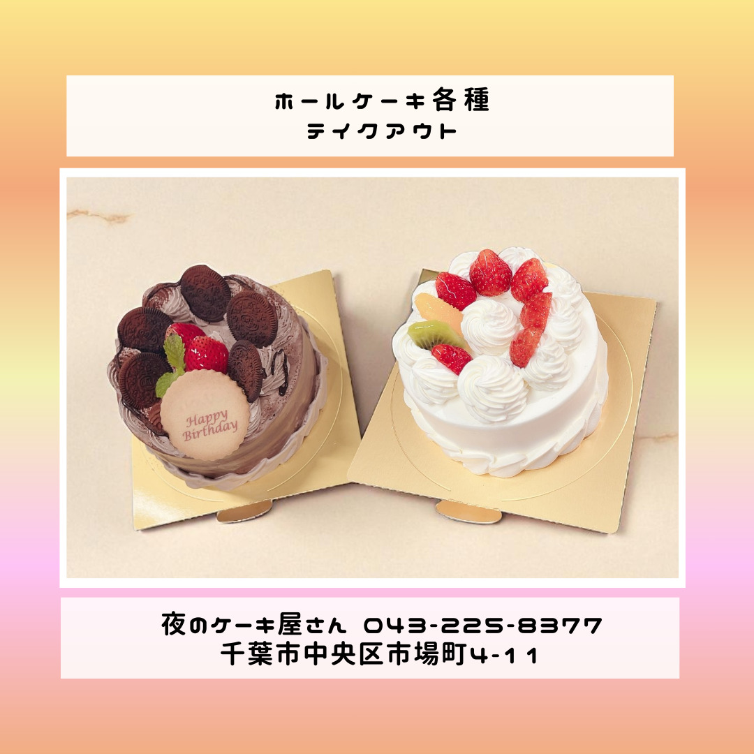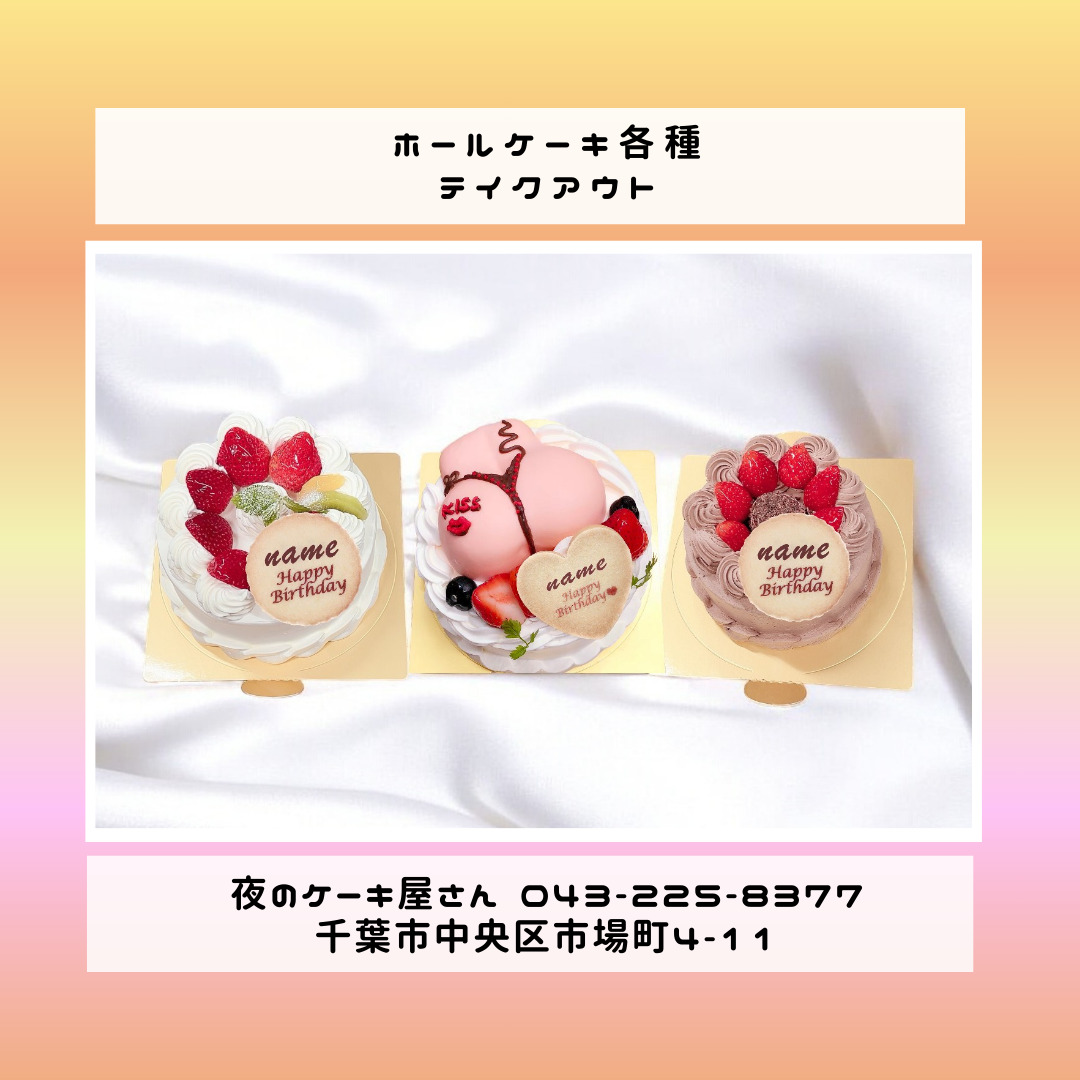 「夜のケーキ屋さん 千葉」で検索し🔎、当店のホームページからケーキの参考画像たくさん掲載しておりますので、✅ケーキのスクショを撮ってご相談いただけると適切なアドバイス、ご提案が出来ます。